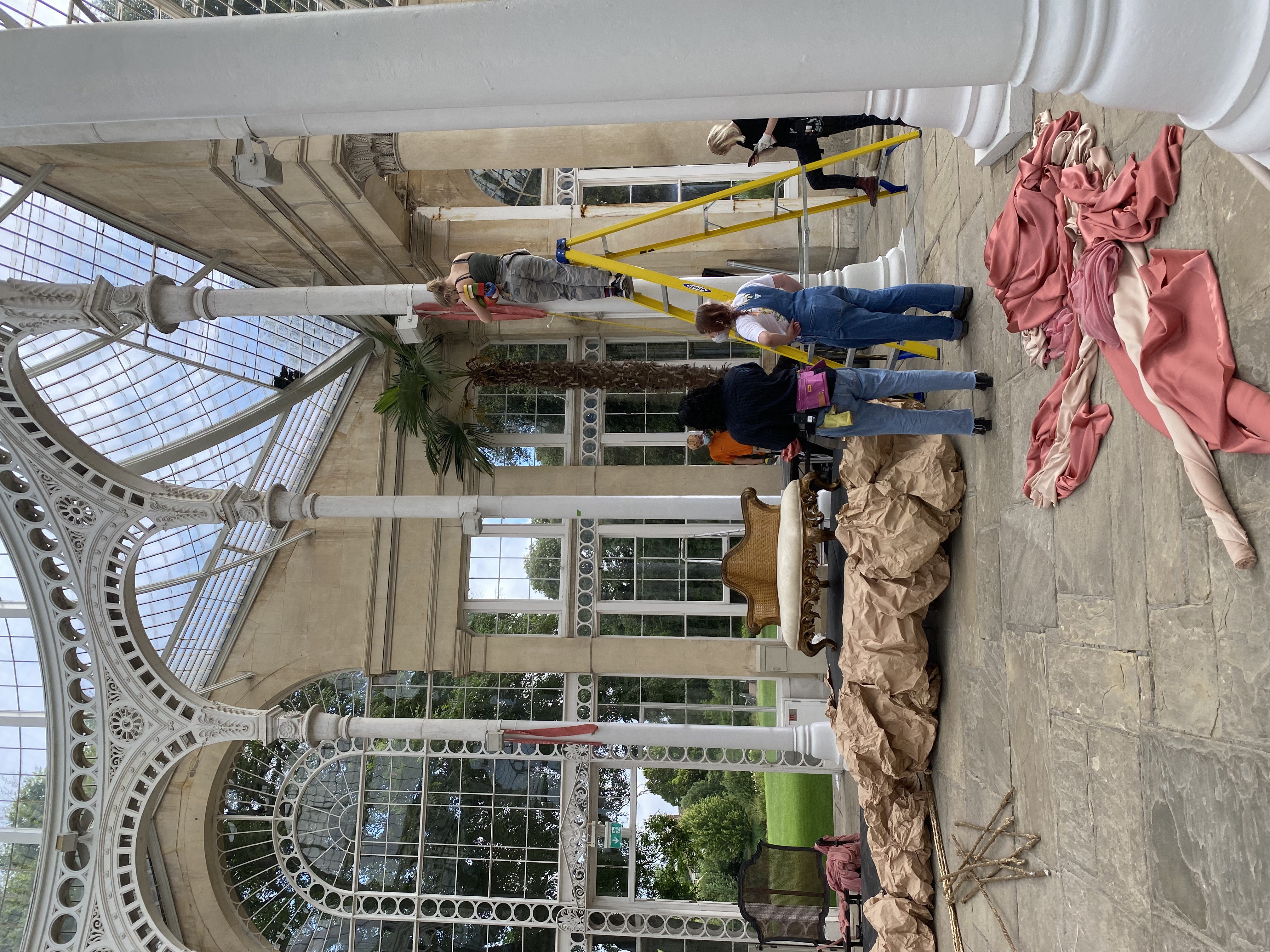 Paper painted to imitate rocks beneath the singers’ ‘thrones’.